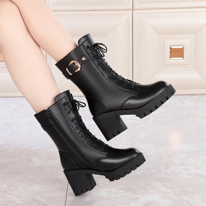 Ботинки женские весенние и осенние одинарные ботинки Ботинки Martin Ботинки на толстом каблуке Ботинки на высоком каблуке Короткие ботинки средней высоты