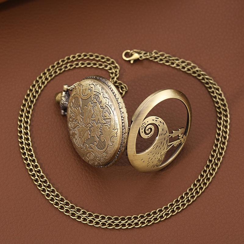 Мужские часы Классические винтажные резные бронзовые карманные часы с цепочкой и ожерельем Винтажные кварцевые часы с подвеской Часы с цепочкой Мужские женские часы