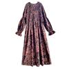Johnature Женское осеннее платье с длинными рукавами и принтом, свободное платье в стиле ретро с круглым вырезом и рукавами-фонариками
