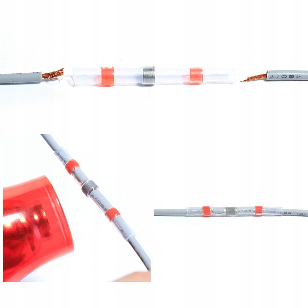 Комплект быстроразъемных соединений с оловом в термоусадочной трубке для ремонта и соединения проводов.