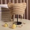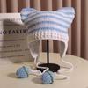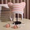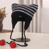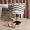 Женская шерстяная шапка с клубничным ремешком и кошачьими ушками в полоску, трикотажная защитная шапка для ушей, защищающая от холода