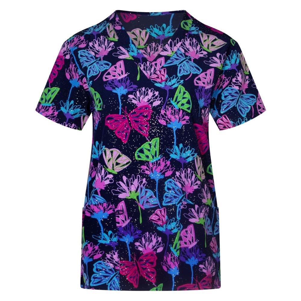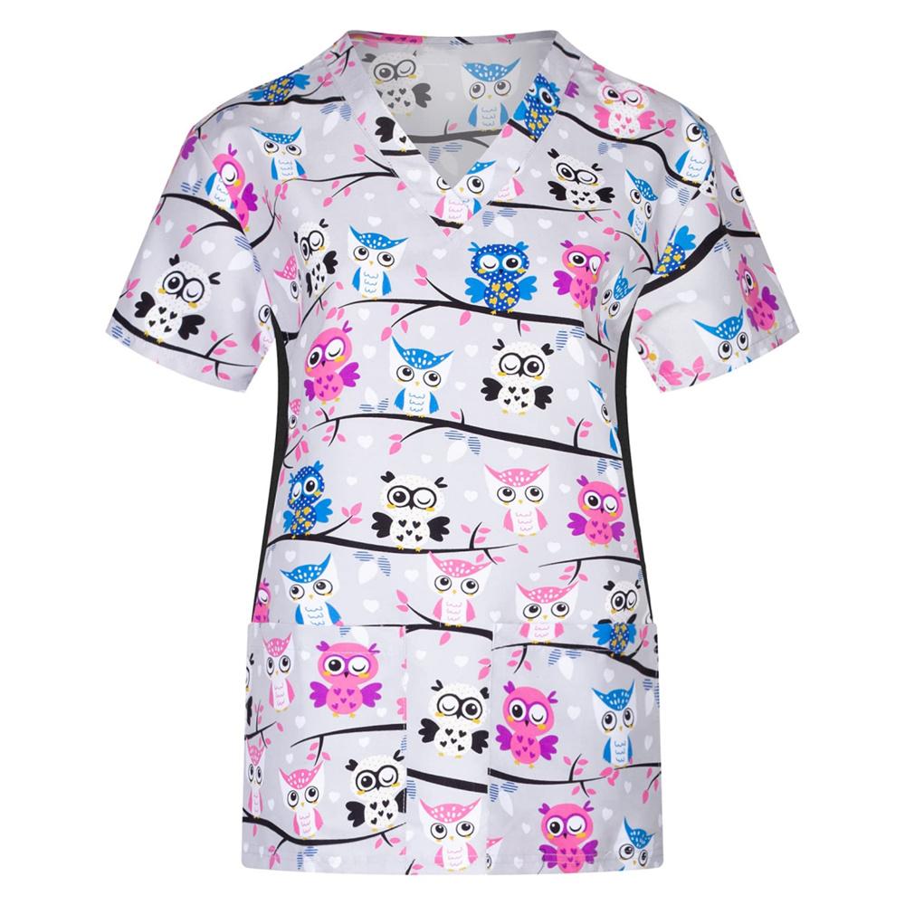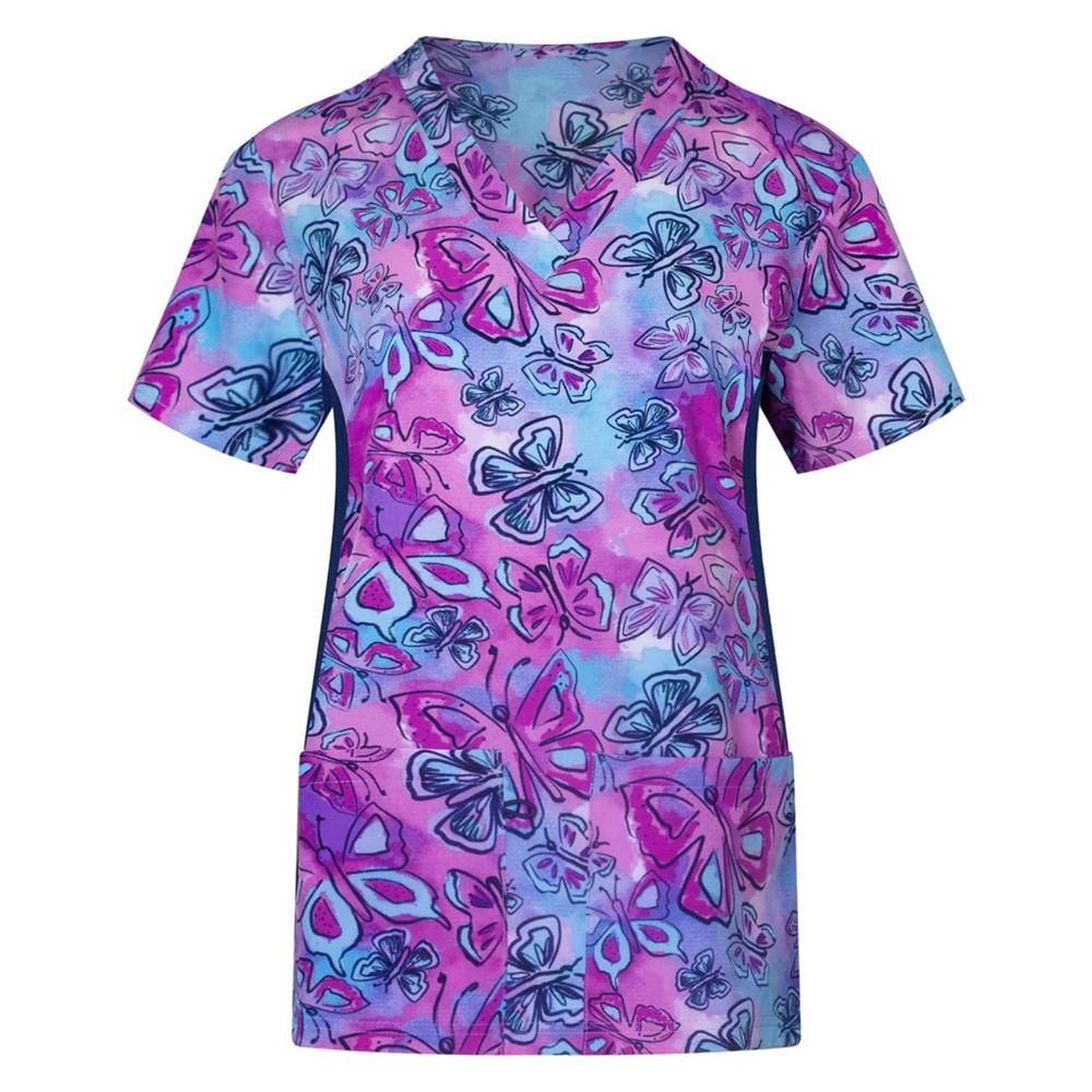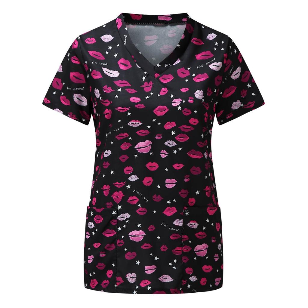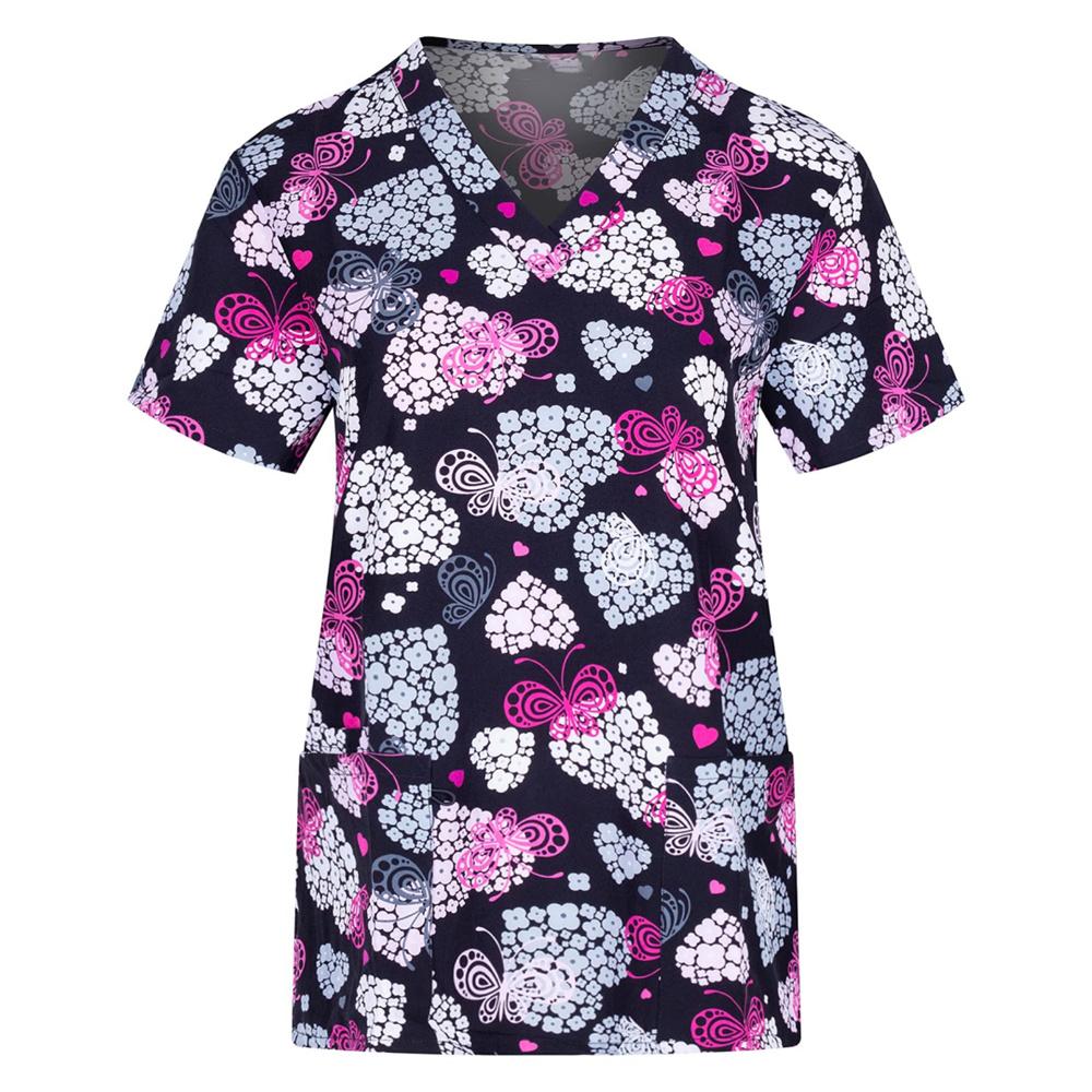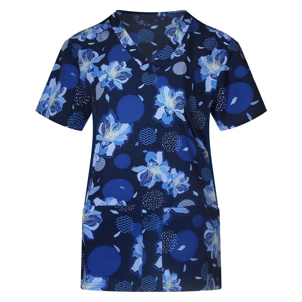 Женская униформа медсестры с коротким рукавом и V-образным вырезом, рабочая одежда с цветочным принтом, женская повседневная медицинская блузка для медсестер, рубашки