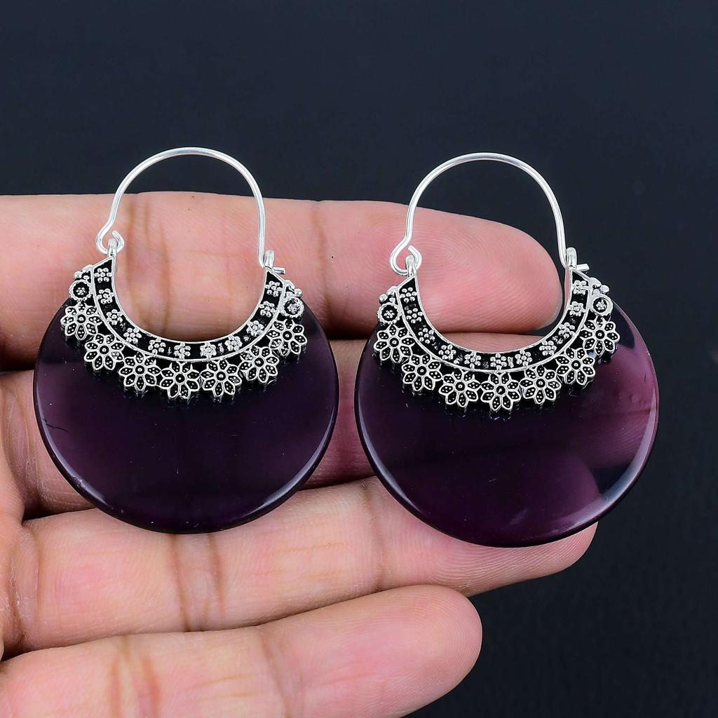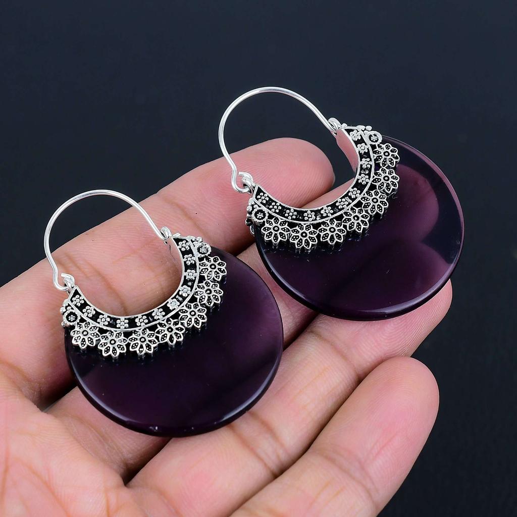 Серьги с аметистом из цельного серебра 925 пробы, ручной работы, ювелирное украшение, подарок для женщин и девушек LG-578