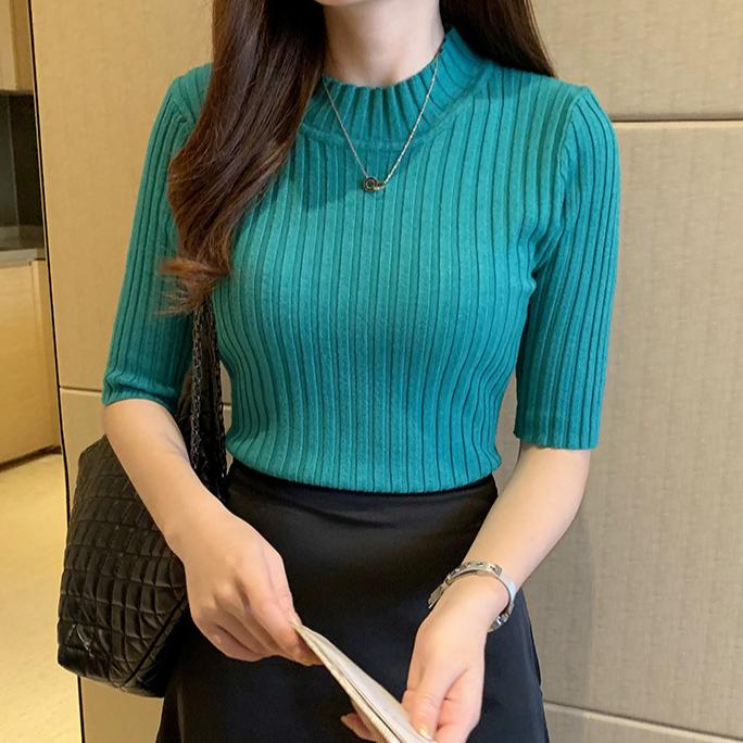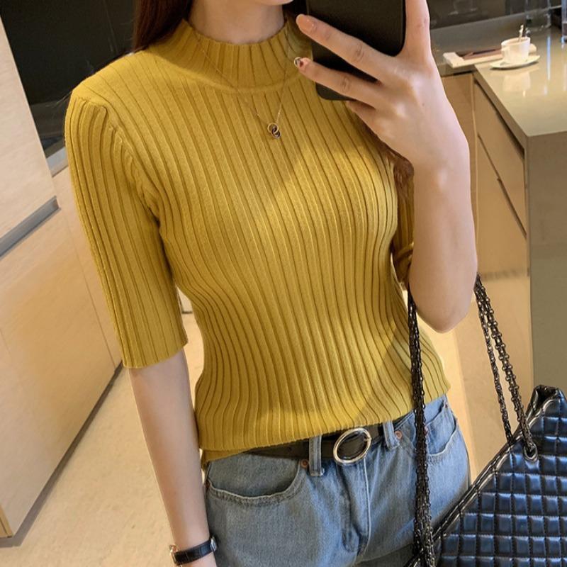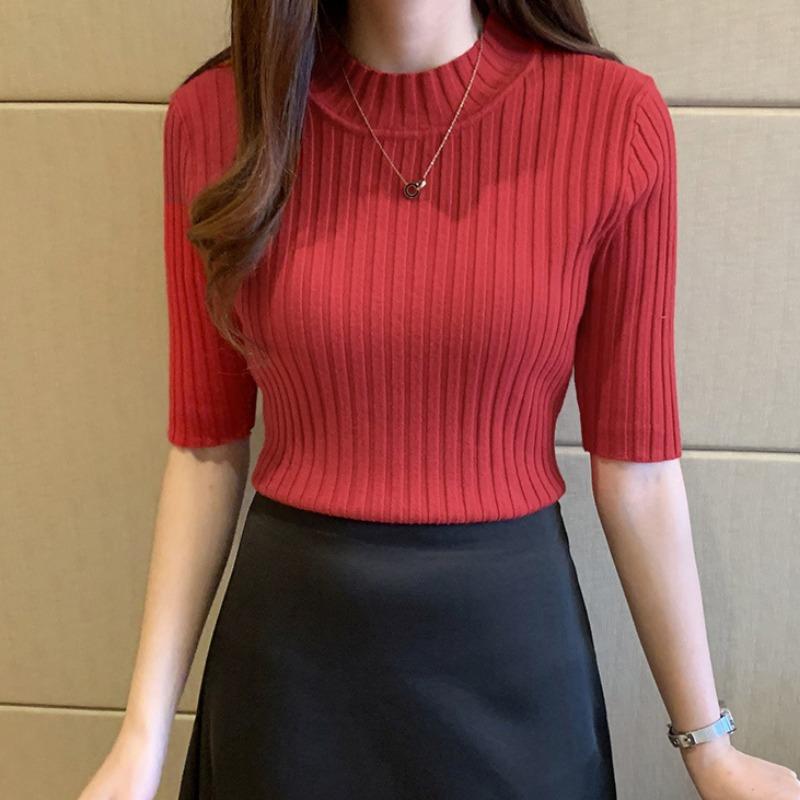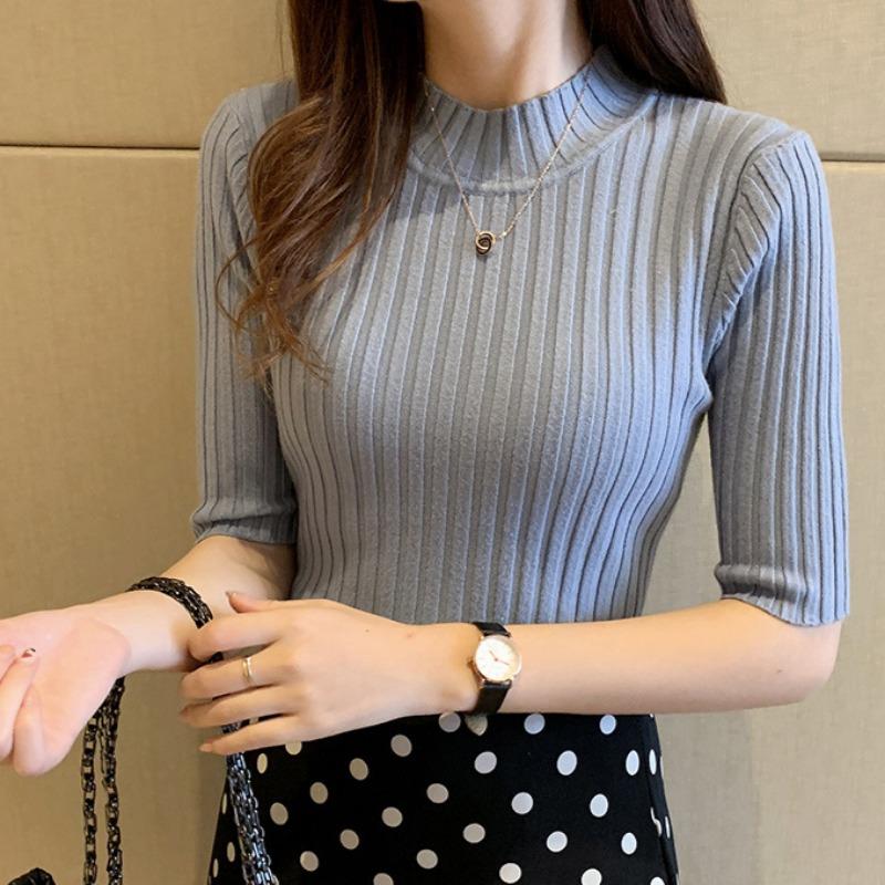 Вязаный свитер женский тонкий сексуальный свитер со средним рукавом однотонный базовый свитер осенне-зимний тонкий пуловер свитер