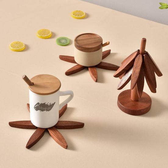 Каждый штатив с шестью небольшими деревянными блоками легко раскладывается, обеспечивая устойчивую подставку для ваших блюд.. Просто возьмите блок из кронштейна, положите его на стол и дайте ему естественным образом расшириться, чтобы поддержать вашу посуду.. Эта продуманная конструкция гарантирует, что каждый раз процесс приготовления пищи будет легким и приятным.