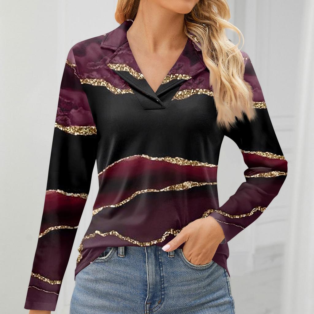 Женская мода для отдыха с длинным рукавом и V-образным вырезом с цветочным принтом