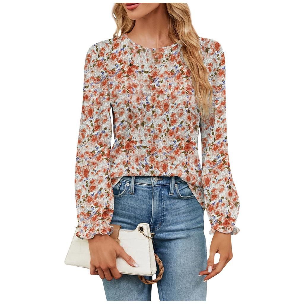 Женский модный сексуальный удобный маленький пуловер с круглым вырезом и цветочным принтом, топ с длинными рукавами для отпуска и отдыха