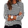 Женская модная повседневная футболка с длинным рукавом и круглым вырезом, полосатая футболка