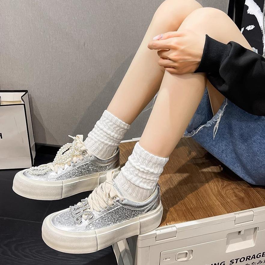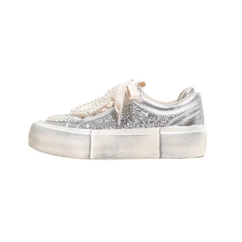 Женские туфли Raise the Bottom, новые весенние белые туфли, супермягкие, удобные, модные, стильные, украшенные блестками туфли на платформе с бриллиантами