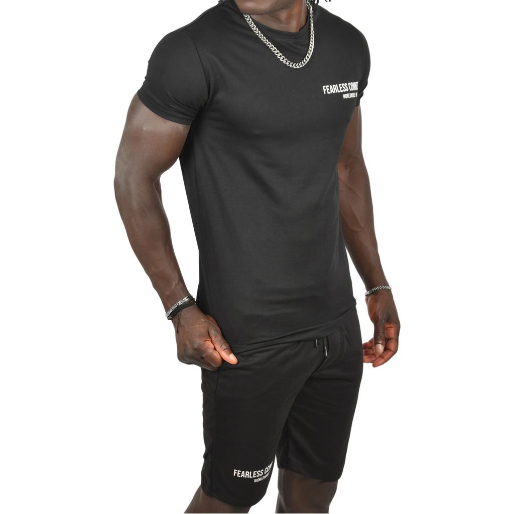 Название продукта : DeepSEA Text Printed Slim Fit футболка из лайкры, шорты, комплект из 2 предметов 2403195