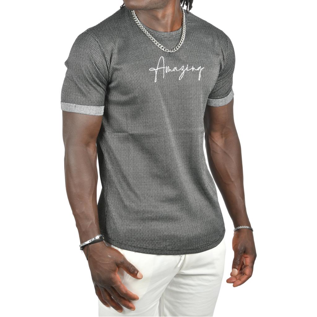 Деталь : Узкая футболка с круглым вырезом из однотонной ткани с рисунком. Футболка с текстовой вышивкой спереди. Стильная и удобная модель футболки, подходящая для ежедневного ношения.. Тонкая посадка.