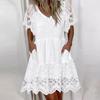 Модное женское повседневное летнее однотонное платье с коротким рукавом с v-образным вырезом — купить товар онлайн с бесплатной доставкой до всему миру!