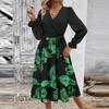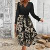 Женское платье с V-образным вырезом, длинными рукавами, принтом в стиле пэчворк, юбка средней длины А-силуэта
