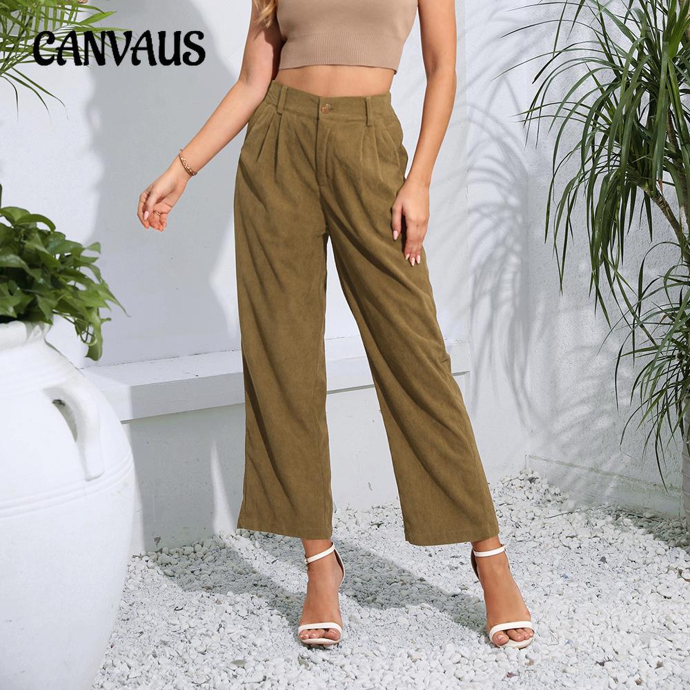 Весенние и осенние женские брюки Simple Temperament с высокой талией, прямые повседневные вельветовые брюки — купить товар онлайн с бесплатной доставкой по всему миру!