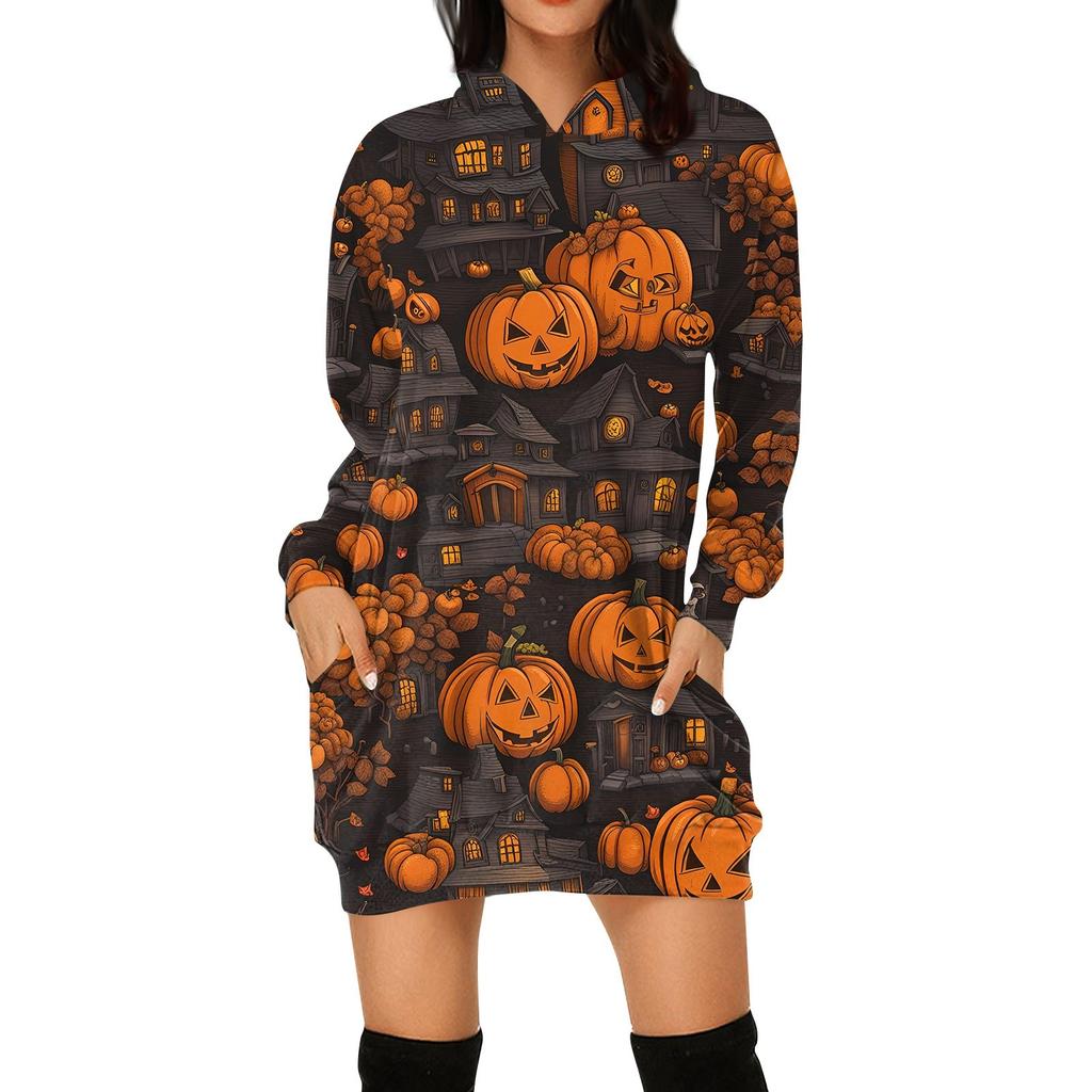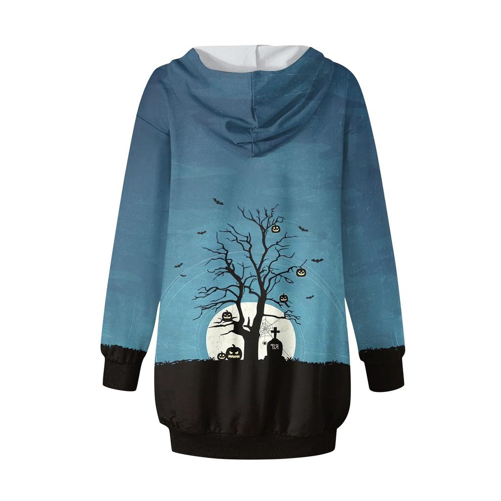 Женская мода свободный повседневный карман с длинным рукавом толстовка с принтом свитшот