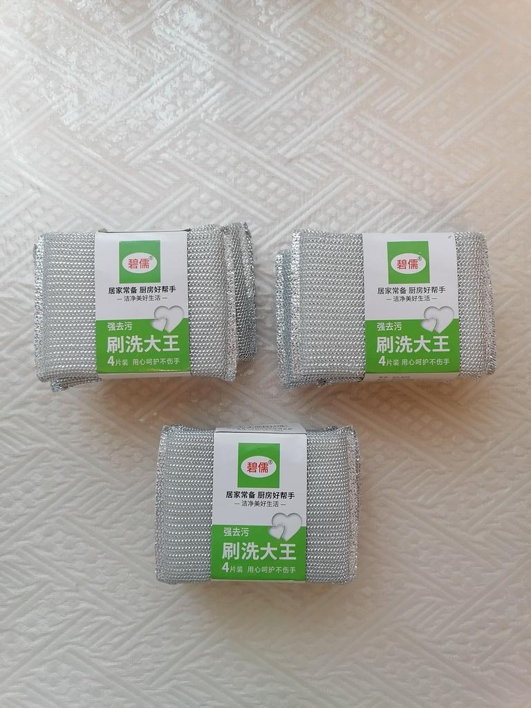 ГУБКИ ДЛЯ МЫТЬЯ ПОСУДЫ 🧽. Заказываю их на постоянной основе. 💥 Я заказала комплект из 12 штук. В почтовом пакете пришли три спайки по 4 штуки. 💥 Размер губки 12×8 см, очень удобный. Поролоновая основа покрыта сеткой с металлизированной нитью. Швы надёжно запаяны. 💥 Губки отлично вспенивают средство для посуды. Благодаря металлической нити в составе, легко справляется с пригоревшим жиром, известковым налетом и другими трудно выводимыми загрязнениями. При этом не оставляет царапин на поверхности. Её хватает надолго. Мне очень нравятся эти губки. Рекомендую! 👍 Желаю всем только удачных покупок🛍️! 💋💋💋