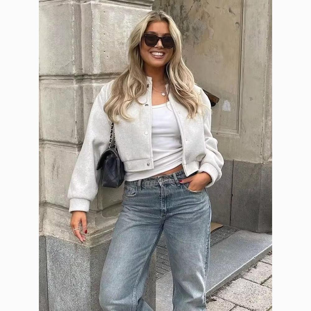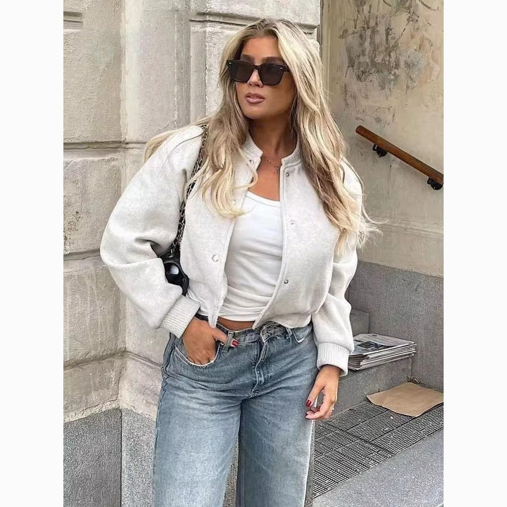 Осенняя женская свободная повседневная однотонная бейсбольная куртка-кардиган