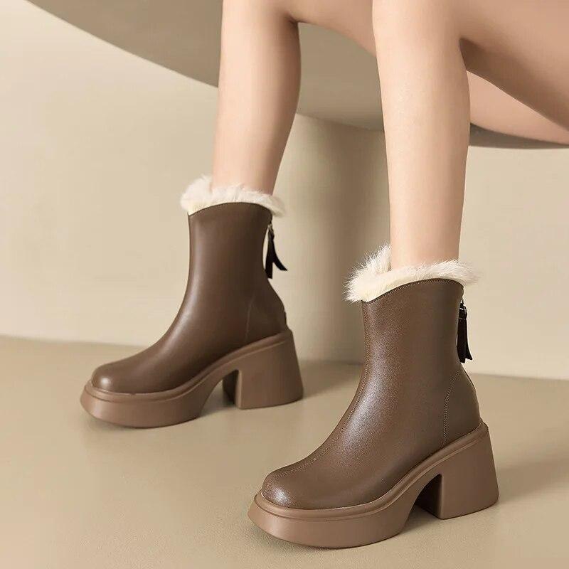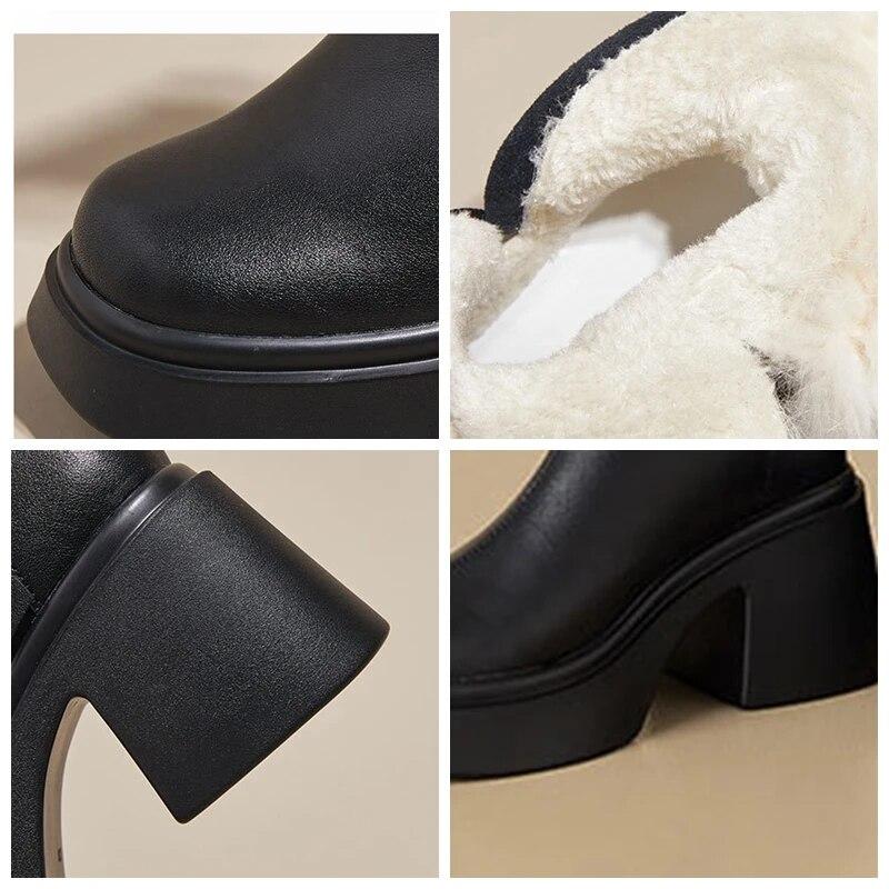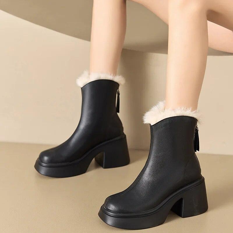Женские зимние теплые ботильоны из натуральной кожи на платформе, женские кроссовки, повседневная обувь на толстой подошве для мотоциклистов, женские зимние плюшевые ботинки на платформе