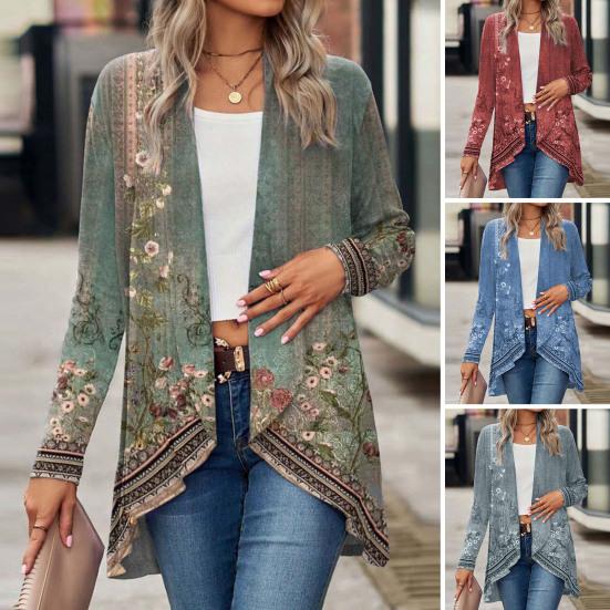 Женское осенне-весеннее пальто Vinage с цветочным принтом и открытой строчкой с длинным рукавом, неровный подол, свободная шаль в этническом стиле, женская куртка-кардиган средней длины, шаль — купить товар онлайн с бесплатной доставкой до всему миру!