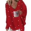 Женский осенне-зимний свитер, утолщенный плюшевый свитер с длинными рукавами, декор из бисера, свободный однотонный мягкий пуловер с v-образным вырезом, вязаный женский свитер, топ