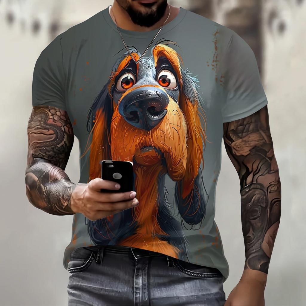 Забавный 3D-принт собаки мужская футболка повседневная свободная с коротким рукавом О-образным вырезом модная трендовая мужская одежда летняя дышащая футболка большого размера