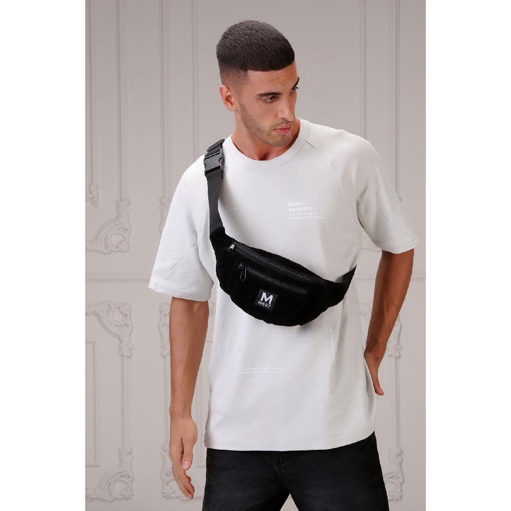 Черная замшевая сумка через плечо унисекс с 3 отделениями на талии и плече