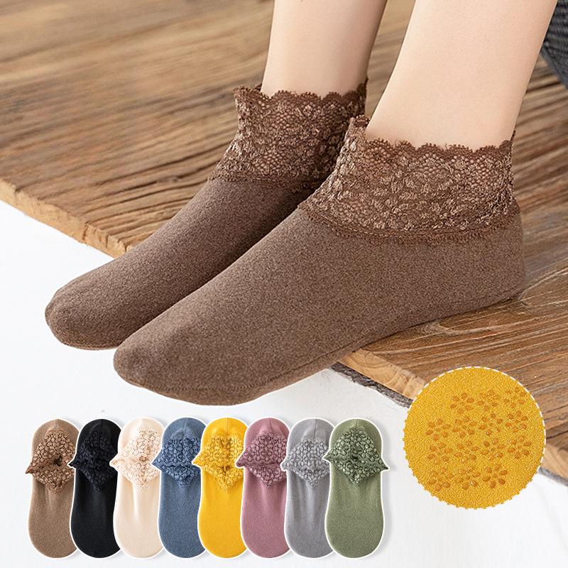 Женские осенне-зимние носки, теплые, утолщенные, термальные, мягкие, однотонные, шерстяные, кашемировые, зимние сапоги, бархатные, кружевные, домашние носки-тапочки