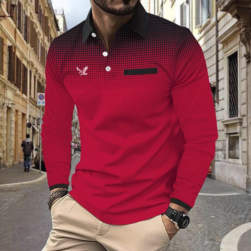 Мужская рубашка поло с длинным рукавом и принтом логотипа орла из 100% полиэстера, быстросохнущая, повседневная, деловая, топы