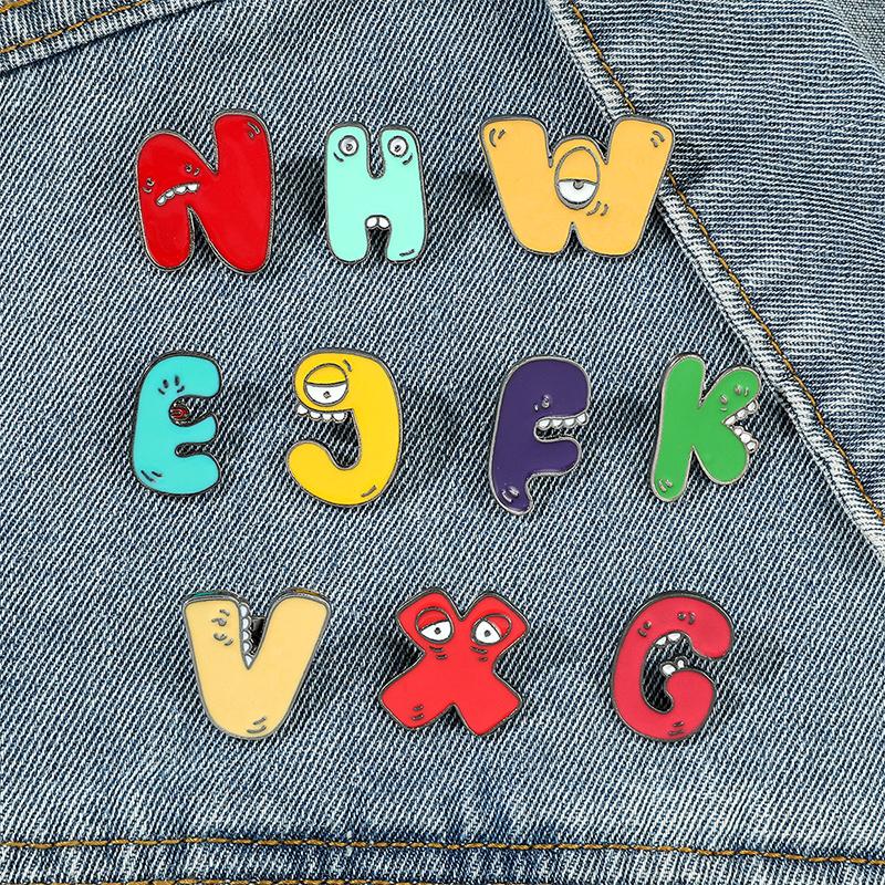 Буквы AZ Инициалы Имя Пальто Свитер Рубашки Платье Сумка Значки Мультфильм Ювелирные изделия со смыслом Аксессуары