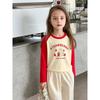 Футболка с длинным рукавом для девочек на весну и осень, хлопковая футболка с круглым вырезом и длинными рукавами, детская футболка