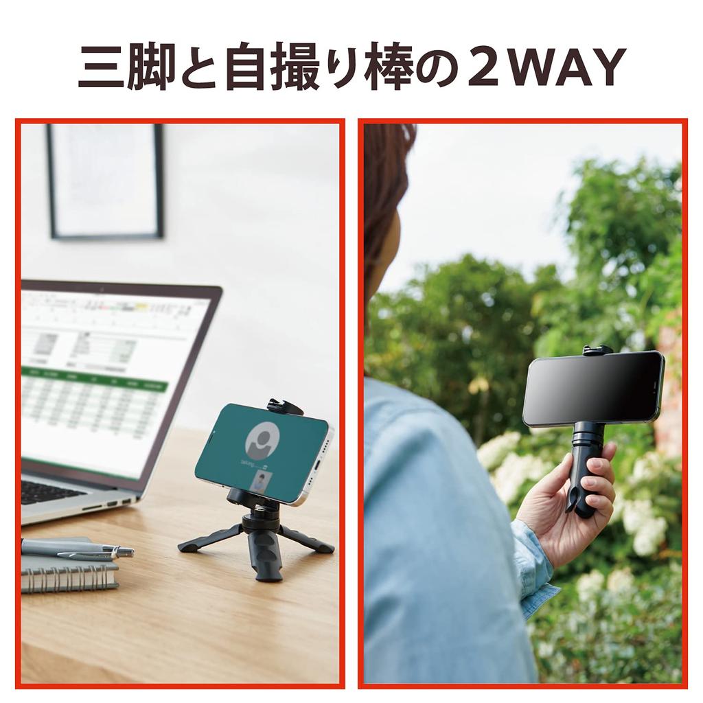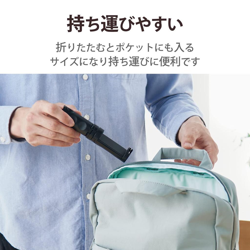 Штатив для селфи ELECOM Tripod Selfie Stick 2way Compact [для iPhoneAndroid] с башмаком для аксессуаров, черный P-STSRSSBK