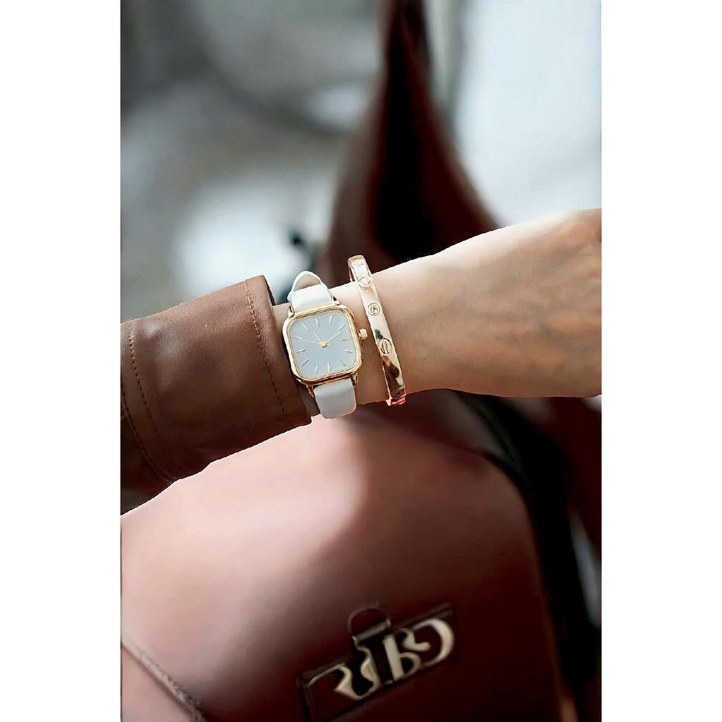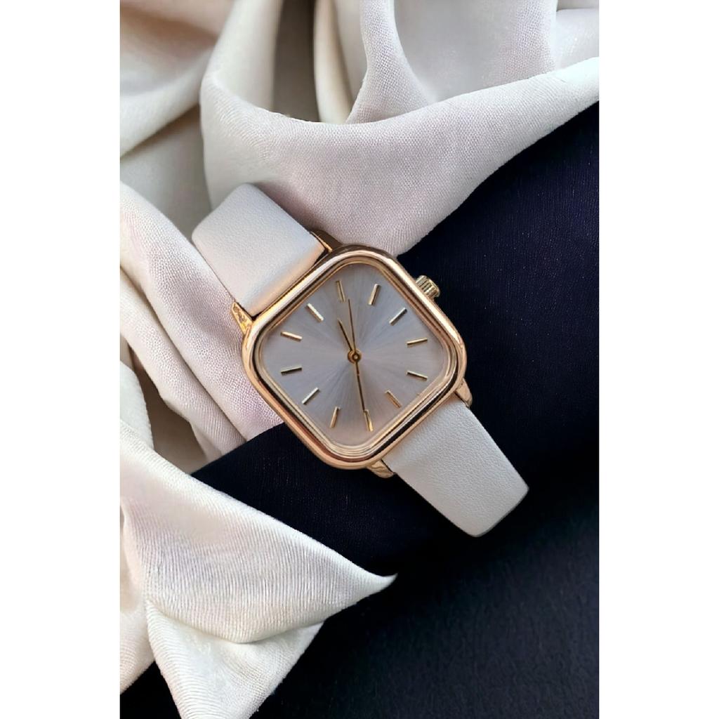Roman Numeral White Color Gold Case Leather Strap Vintage Watch