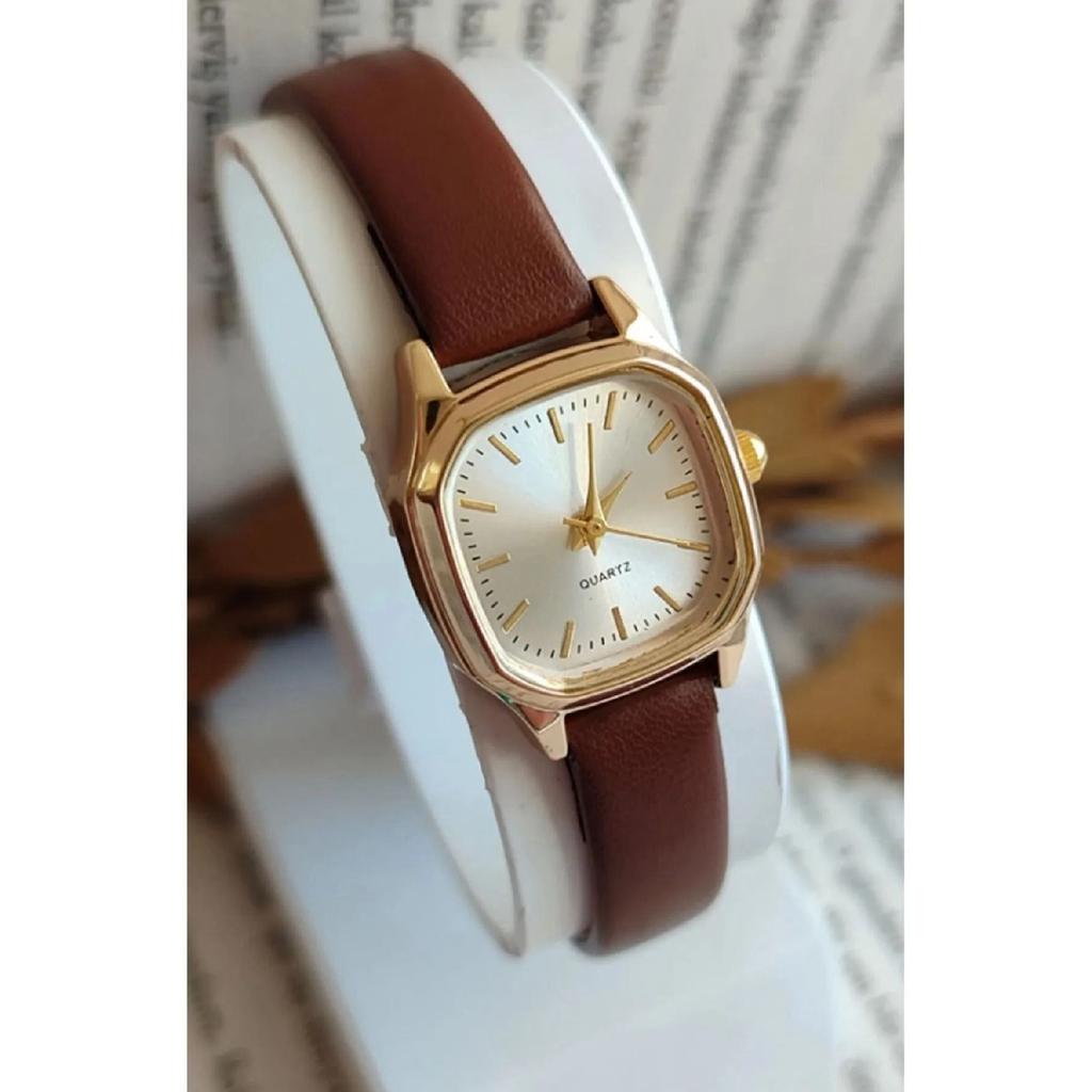 Женские винтажные минимальные коричневые наручные часы, новые модные наручные часы из нержавеющей стали с кожаным ремешком