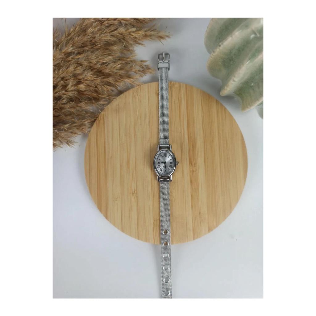 Винтажные серебряные женские наручные часы с овальным металлическим ремешком в минималистском стиле
