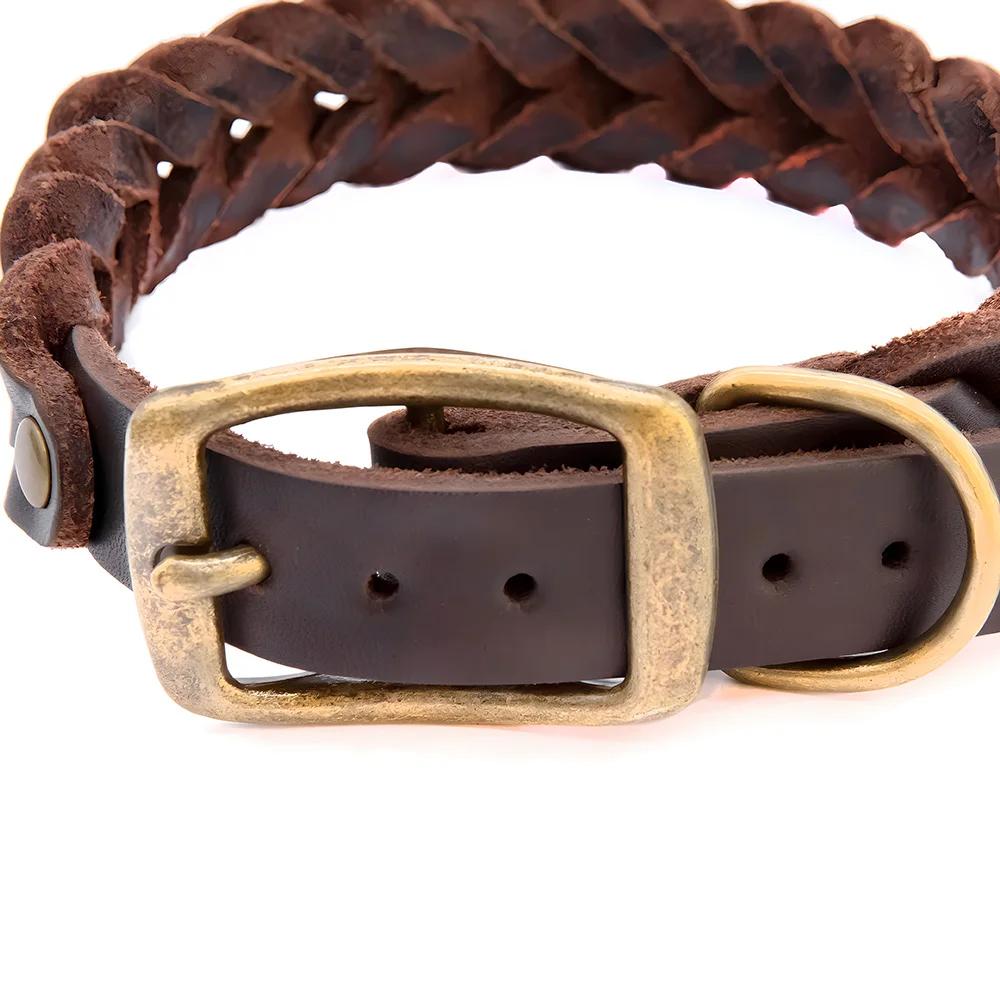 Ошейники для собак из натуральной кожи, прочные плетеные кожаные ошейники для собак маленьких, средних и больших пород, аксессуары для немецких овчарок