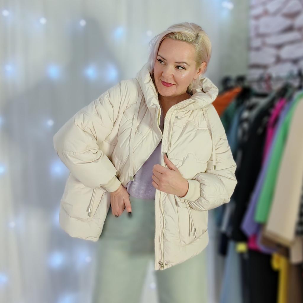 ДЕМИСЕЗОННАЯ КУРТКА 🔥 Классная! Привет 👋 Сходу скажу, что если вы впервые на Джум и только начинаете присматриваться к магазинам - настоятельно рекомендую обратить внимание на данный магазин. Ни разу не было такого,чтобы мне не понравилась вещь, купленная здесь. Теперь переходим к куртке. Классный укороченный вариант на демисезон. Лёгкая, комфортная и все продумано для защиты от ветров Куртка теплая,не пухлая и не тощая. Синтепона достаточно. Подойдёт и на лёгкие морозы со свитером. Она на пластиковой молнии, есть защитная кулиска от ветра, она на кнопках. Застёгивается под горло, хорошо защищает шею. Есть капюшон, тоже теплый, на функциональных утягивающих шнурках. Капюшон не очень глубокий, нормальный. Рукав реглан, на плотной резинке, тоже хорошо защищает от ветра. Она красиво оформлена. Есть большие накладные карманы, для них сделаны красивушие кулиски, украшены вертикальной строчкой и сердечками. Также есть крупная пуговка в цвет и прикольные завязки вокруг неё - смотрится интересно. По бокам небольшие разрезы, низ скруглен. На спинке есть декоративное украшение в виде ложной кулиски со шнурком, как на карманах спереди. Куртка простегана красивым рисунком. Вообще вещь качественная, прошита отлично, бирки на месте. В подарок продавец положил красивый шейный платок небольшой. На выбор 4 расцветки Размеры: M - XXXL У меня в белом цвете, немного с коричнево-серым отливом. А вот с размером будьте внимательны. Я сильно ошиблась. Видимо, положила в корзину первый попавшийся, с мыслями определиться позже, а потом просто купила вместе с другими вещами. Поэтому куртка мне мала, хотелось бы минимум на 2 размера больше. Замеры в размере L: 📏длина 67см 📏длина рукава от капюшона 68см 📏ОГ 108см 📏ОТ 108см 📏Низ 106см Скорее всего, перезакажу в большем размере, благо они имеются) Очень понравилась! А вы будете внимательнее 😘 Всем отличных покупок 👋 #elena_likui #женский_гардероб #куртка #демисезон