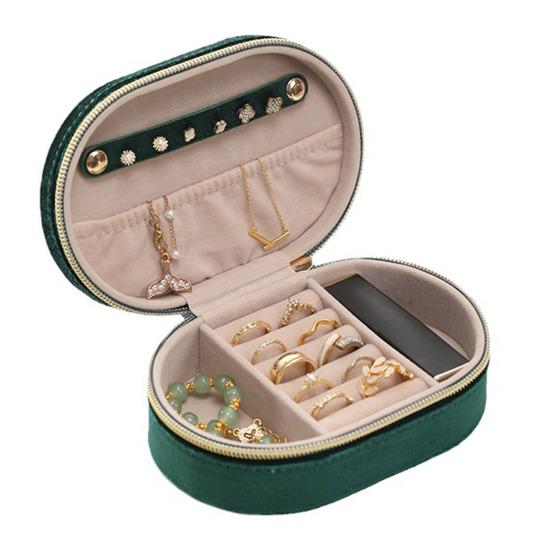 Прочная и водонепроницаемая шкатулка для драгоценностей с бархатной внешней поверхностью и мягкой внутренней подкладкой для двойной защиты и упорядочения ваших украшений.
