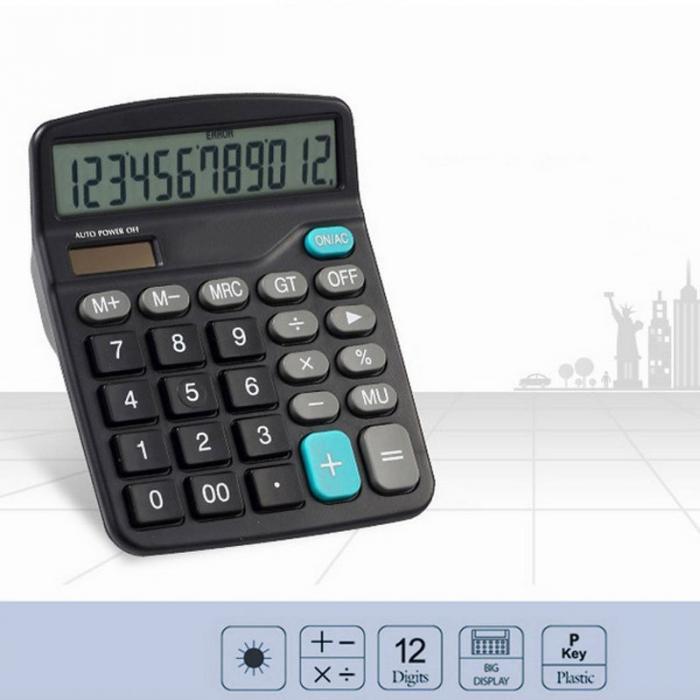 Черный 12-значный калькулятор с большим экраном, модный компьютерный финансовый учетWGHK2298a