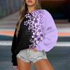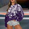 Женская повседневная мода ретро цветочный принт длинный рукав трикотажный спортивный топ свободного кроя