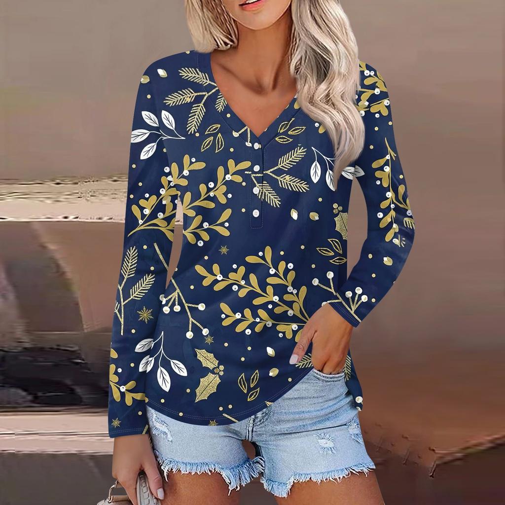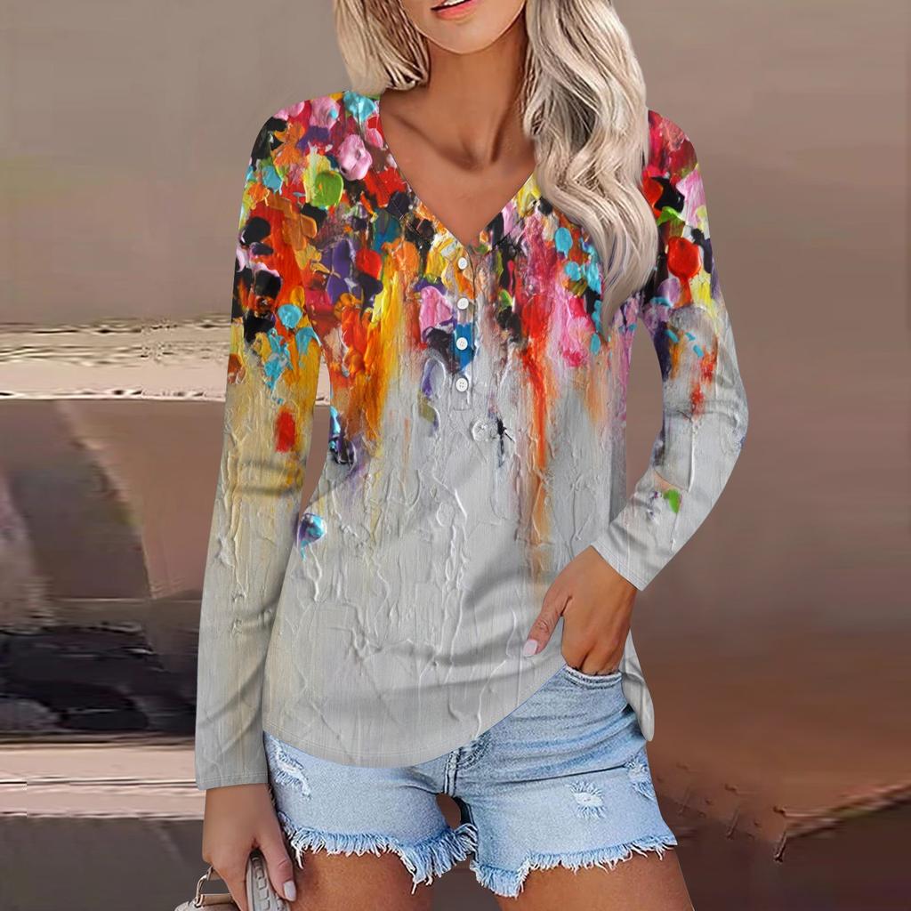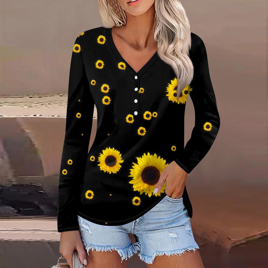 Женский модный повседневный топ на пуговицах с длинным рукавом и цветочным принтом, v-образным вырезом и пуговицами
