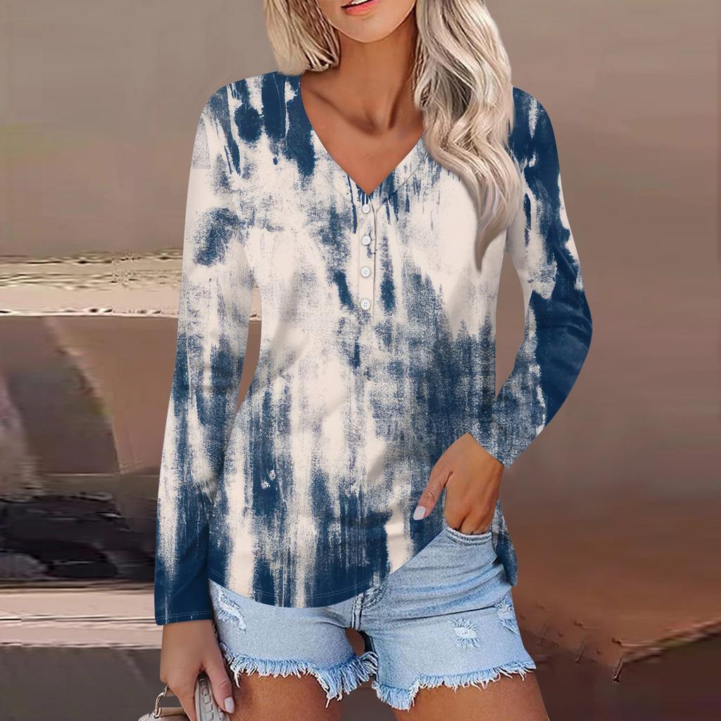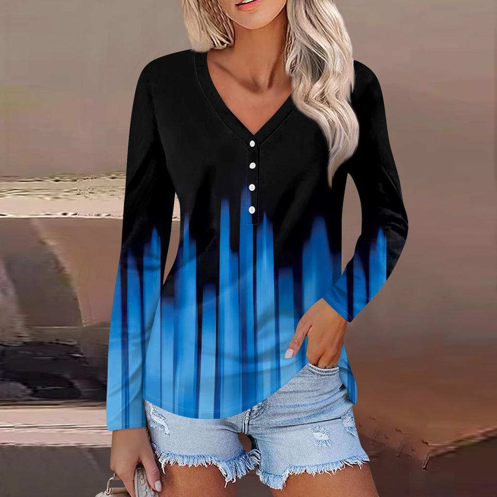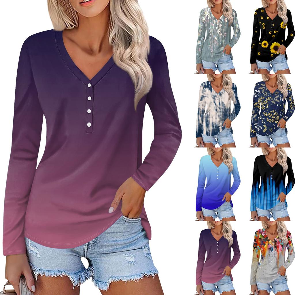 Женский модный повседневный топ на пуговицах с длинным рукавом и цветочным принтом, v-образным вырезом и пуговицами