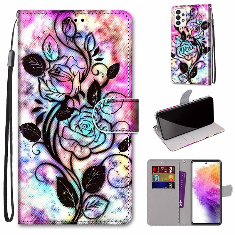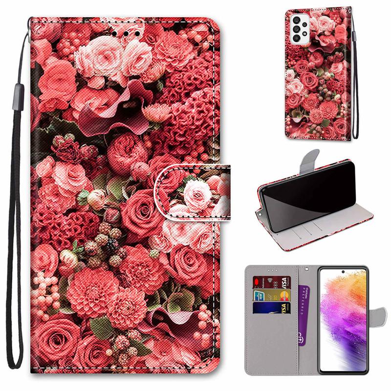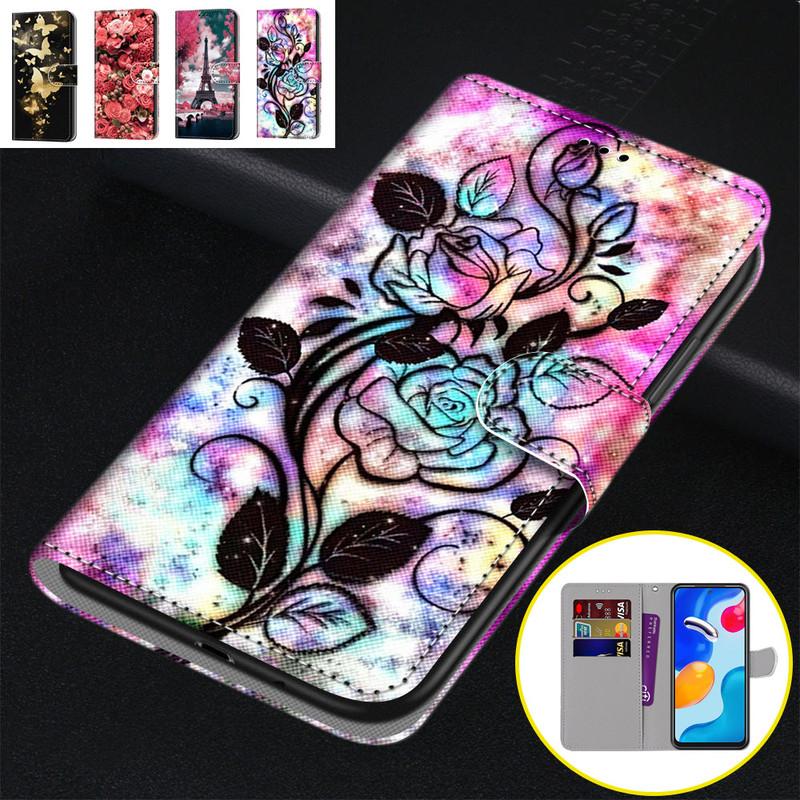 Для iPhone 14 13 12 Pro Max Samsung S23 Plus S22 Ultra A04 A13 A14 A23 милый держатель для карт из искусственной кожи с розами и цветами, флип-кошелек с подставкой для телефона