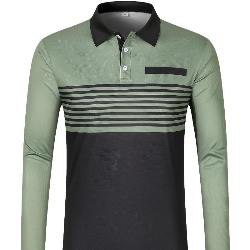 Новая весенне-осенняя мужская рубашка поло с длинными рукавами и полосатым принтом, мужская повседневная рубашка поло, мужские футболки и топы