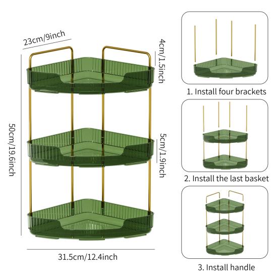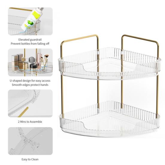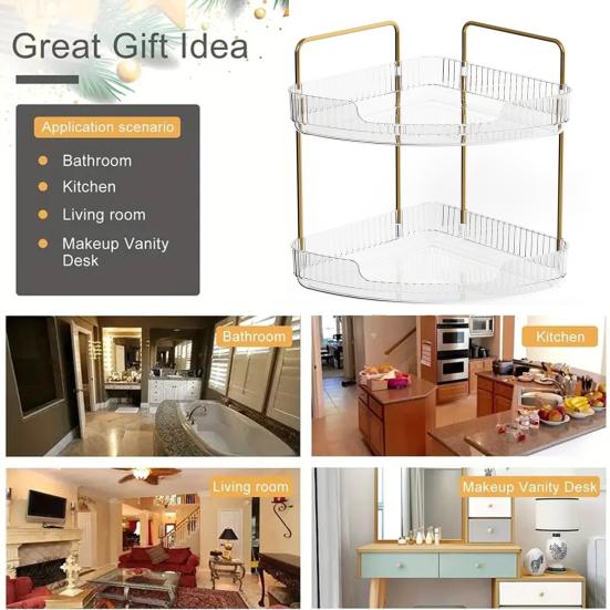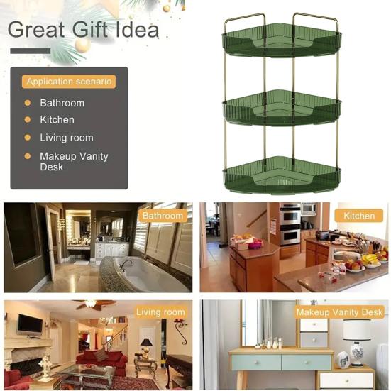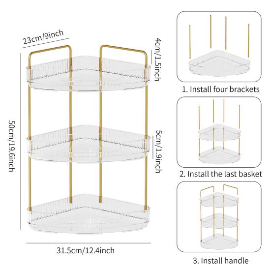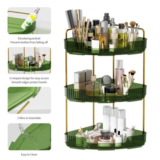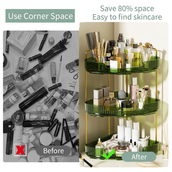 Наш трехъярусный органайзер имеет гибкий размер и конструкцию с углом наклона 90 градусов, подходящую для различных пространств за пределами ванной комнаты.. Украсьте свою кухню, спальню или туалетный столик этим универсальным решением для хранения, которое добавит элегантности любому уголку вашего дома.