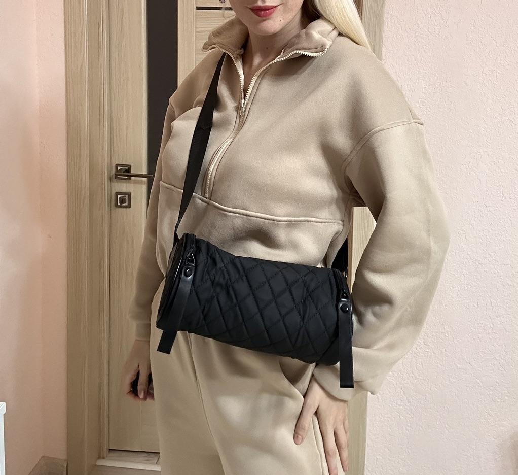 🔸Цилиндрическая сумочка через плечо выполнена из высококачественной экокожи и сочетается с любым образом как классическим, так и спортивным. 🔸Стеганное изделие имеет стильный текстильный широкий ремень, которым можно регулировать длину, ремень не отстегивается. 🔸Размер: 15 на 27 см. 🔸Ткань у сумки водоотталкивающая — PU кожа – обладает высокой износостойкостью и не пропускает влагу. 🔸Благодаря стильному ремню сумку можно удобно носить как через плечо, так и в руке. 🔸Оптимальный размер сумки позволяет вместить все самое необходимое. 🔸Цена качеству полностью соответствует. Рекомендую 👍 Ставлю ⭐⭐⭐⭐⭐ Большое спасибо продавцу ❤️ и Joom ❤️