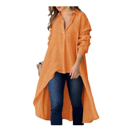 Универсальная женская рубашка: Обновите свой гардероб этой шикарной и непринужденной женской рубашкой из высококачественного полиэфирного волокна.. Свободный крой подойдет к разным формам фигуры, а лацканы и длинные рукава придадут вашему ансамблю нотку изысканности.