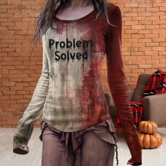 Приготовьтесь окунуться в атмосферу Хэллоуина с нашими жуткими спортивными топами! Отпразднуйте страшно весело с этими элегантными и модными футболками с круглым вырезом, длинными рукавами и принтом в виде крови..