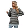 Женские топы с круглым вырезом, длинными рукавами, полосатым принтом, футболка с боковыми разрезами, средней длины, свободный крой, эластичная футболка — купить товар онлайн с бесплатной доставкой по всему миру!