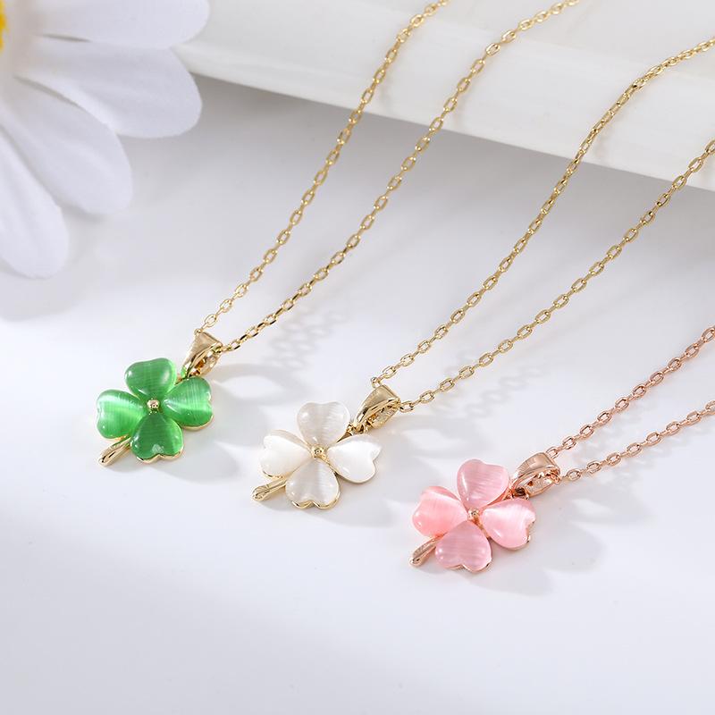 Ожерелье с четырьмя листочками клевера и кошачьим глазом в форме сердца, универсальное ювелирное украшение, простое, высококлассное, с кулоном для женщин, ожерелье