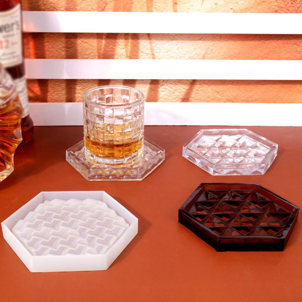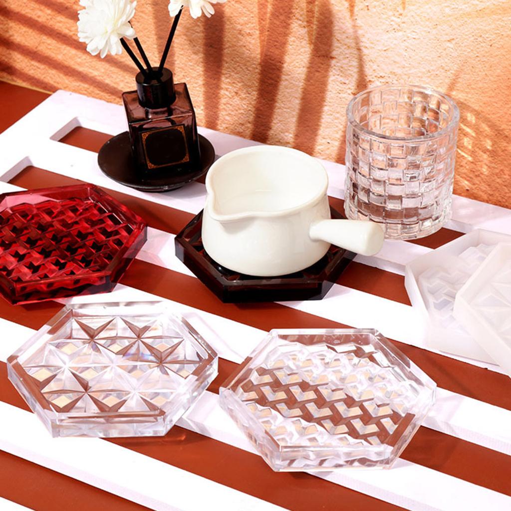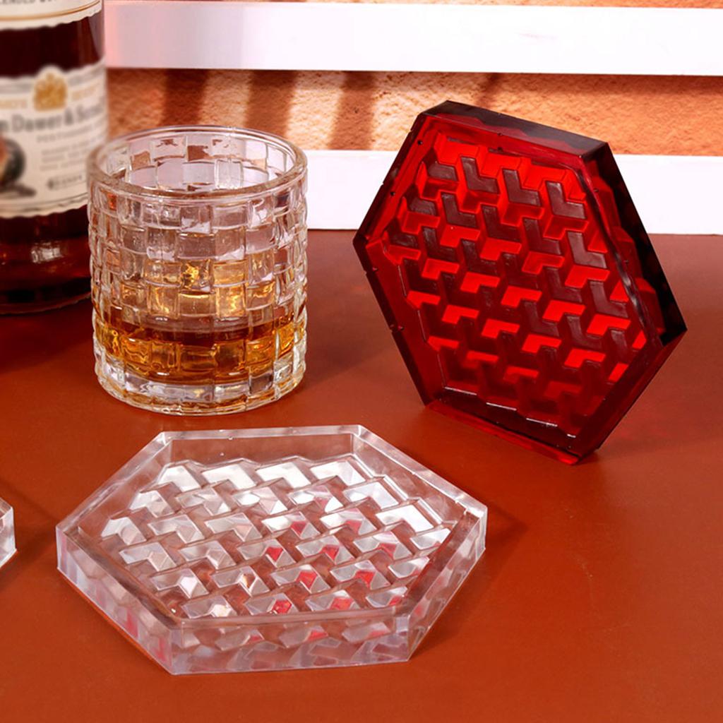 Кристалл эпоксидная Gemeotric шестигранная подставка под стакан, зеркало, силиконовая форма, форма для подноса, форма для литья с использованием смолы, бетона, цемента